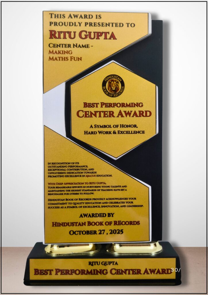“This recognition by the Hindustan Book of Records is a testament to our mission of providing world-class Abacus and Vedic Maths training right here in our offline center.”