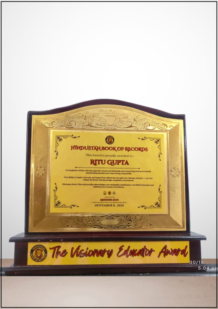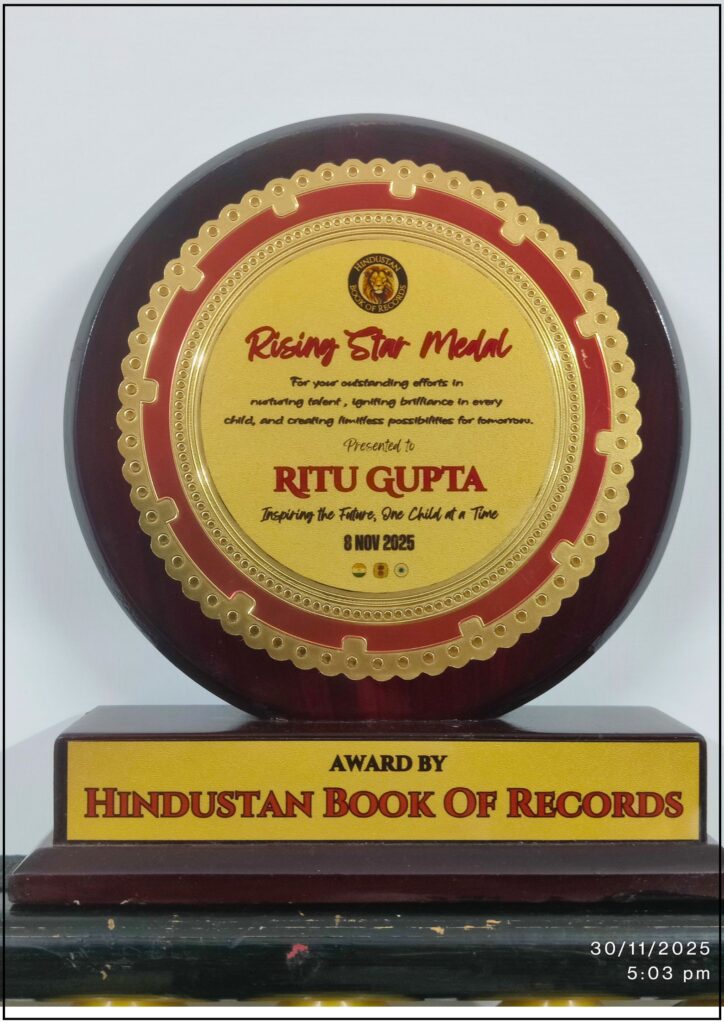 We are honored to share that our founder, Mrs. Ritu Gupta, has been officially recognized by the Hindustan Book of Records with the prestigious “Teacher of the Year – 2025” award.