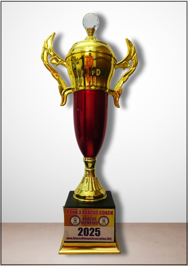 The ultimate recognition in the field. Mrs. Ritu Gupta was awarded the Champion Coach Trophy at the 2026 Abacus Olympiad, marking her as one of the most successful trainers in the country.